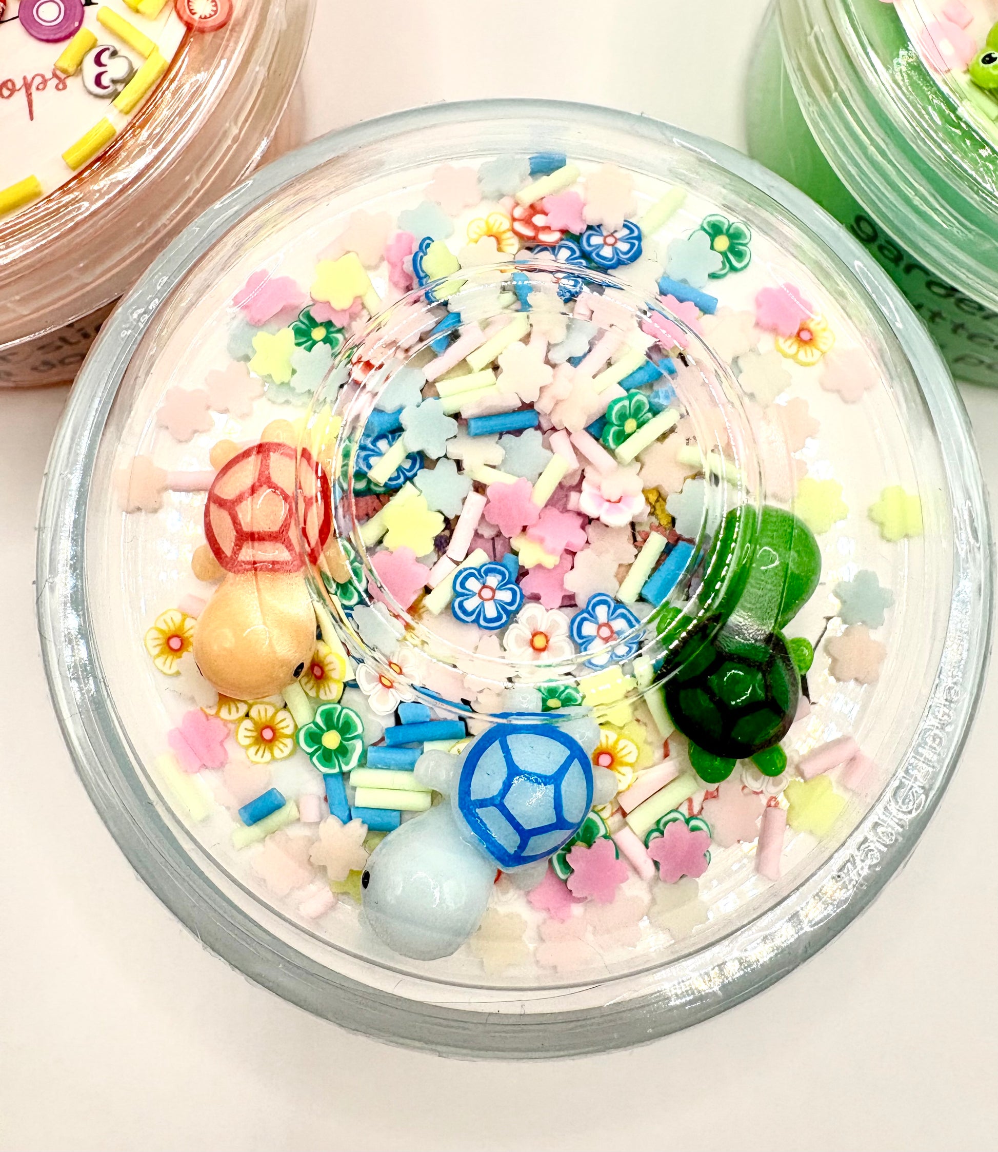 A dreamy cloud slime that seriously smells just like blow pops, you know the lollipops that has the bubble gum inside, you are going to love it! Not to mention this turtles are totally cute too!